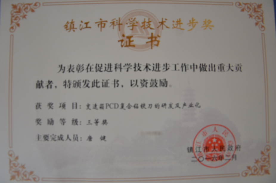 多年來(lái),企業(yè)通過(guò)ISO9001國(guó)際質(zhì)量體系認(rèn)證,被中國(guó)中輕產(chǎn)品質(zhì)保中心授予“全國(guó)金剛石制造行業(yè)質(zhì)量放心滿意單位”,獲得江蘇省高新技術(shù)企業(yè)稱號(hào),榮獲江蘇省小巨人稱號(hào),變速箱PCD復(fù)合鉆鉸刀獲省高新技術(shù)產(chǎn)品等等。